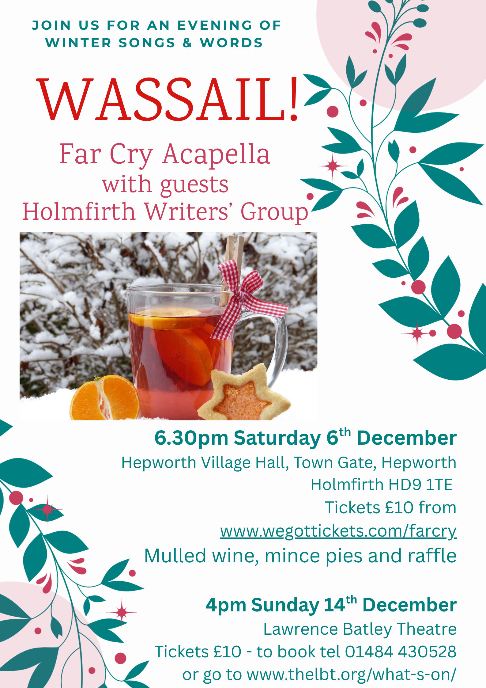 FeaturedWINTER WASSAIL! A winter celebration in songs and words with Far Cry Acapella and Holmfirth Writers’ Group