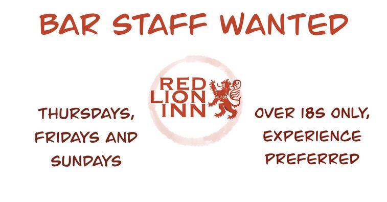 The Red Lion Inn in Jackson Bridge is looking for Bar Staff. Shifts will be Thursdays, Fridays and Sundays. Over 18s only please, and experience is preferred but training will be provided.