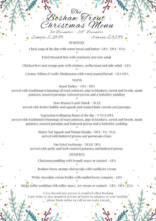 Christmas Menu – The Boshaw Trout Dec 1 Featured 1st December - 24th December Christmas Menu – The Boshaw Trout